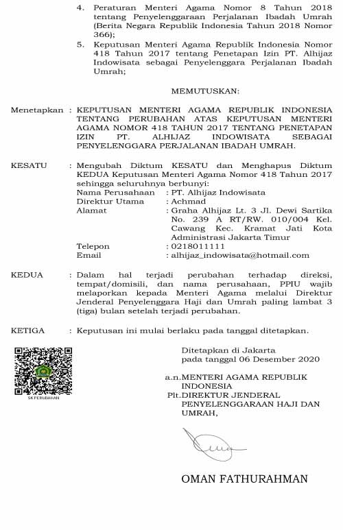 Izin Umroh No.U.490 Tahun 2020